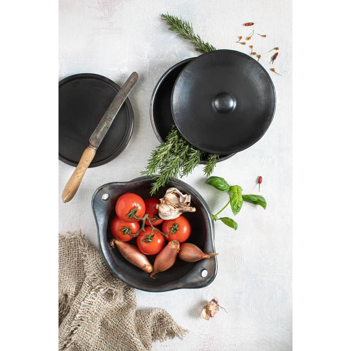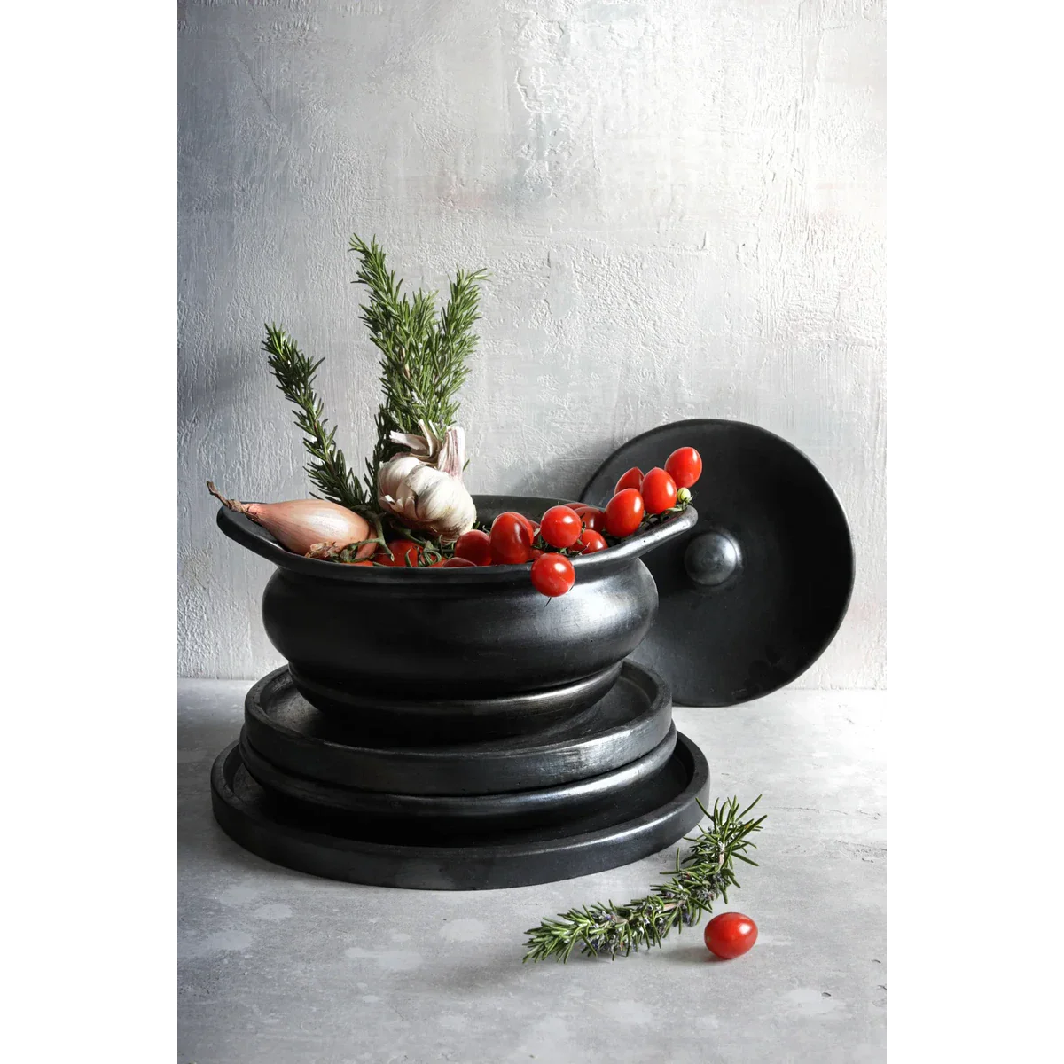 Burned Serveerpot - Zwart Keramiek met Deksel