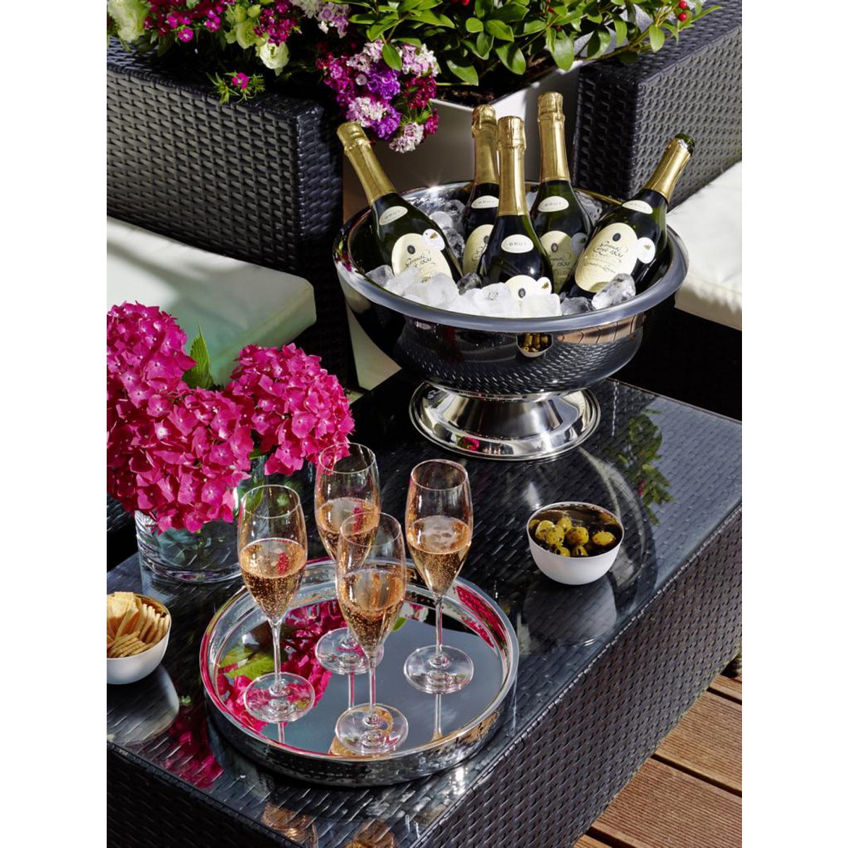 Ervaar ultieme champagne luxe met deze imposante Cadiz XL champagnekoeler van EDZARD. Met zijn royale diameter van 43cm en unieke gehamerde binnenkant biedt deze koeler ruimte voor de grootste champagne- en wijnflessen terwijl hij een spectaculaire presentatie garandeert.