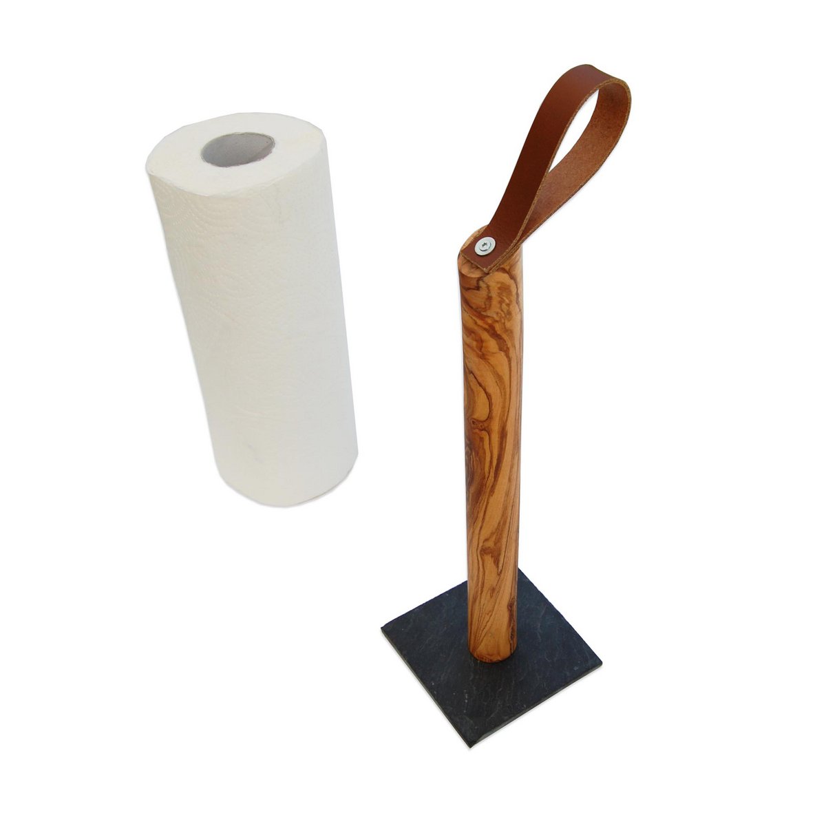 Design Keukenrolhouder Galaxy - Olijfhout met Leisteen Voet