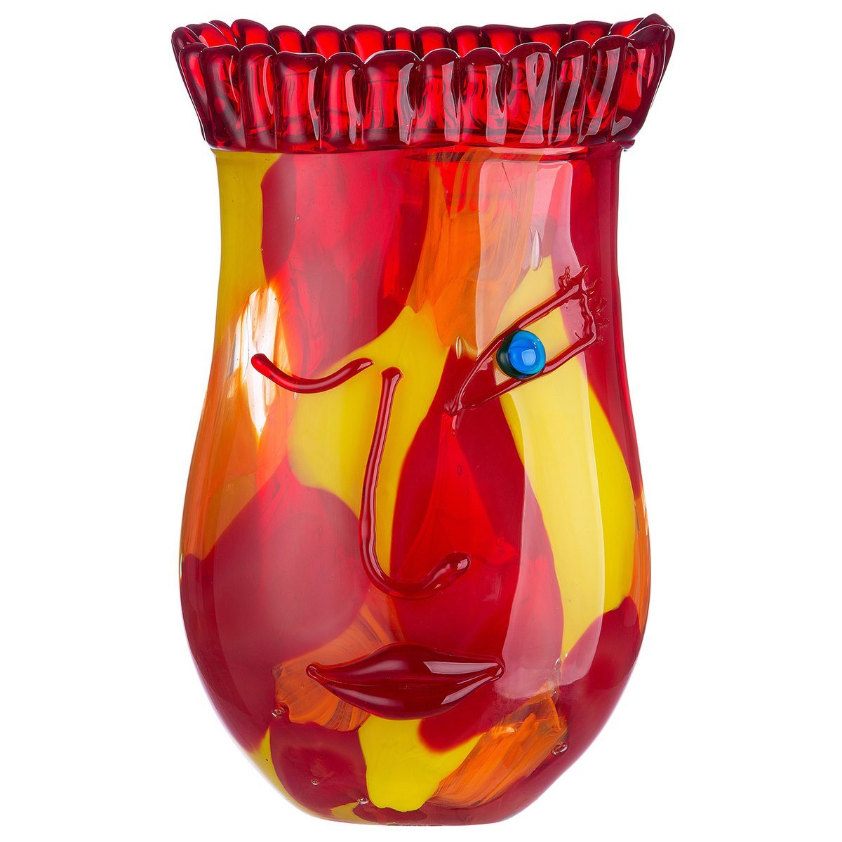 Transformeer je interieur met deze prachtige Gump glaskunst vaas in warme rood-oranje-geel tinten. Een echte eyecatcher die zowel met als zonder bloemen een kunstwerk op zich is.