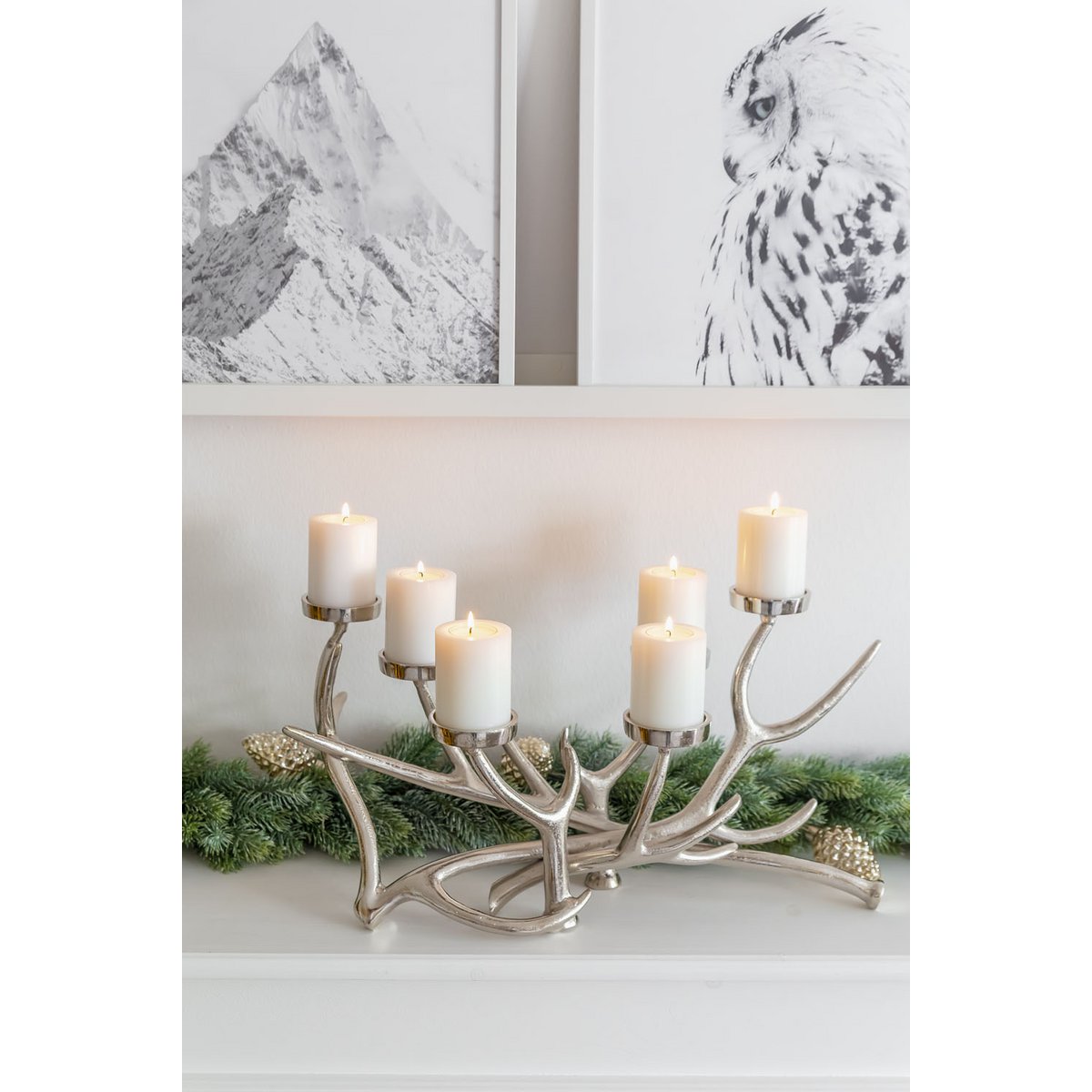 Breng de majestueuze schoonheid van de Nederlandse natuur naar je interieur met deze prachtige James gewei kandelaar van EDZARD. Met zijn unieke gewei-geïnspireerde design en imposante 6 vlammen creëert deze kandelaar een warme, natuurlijke sfeer die perfect past bij de Nederlandse liefde voor natuur en gezelligheid.