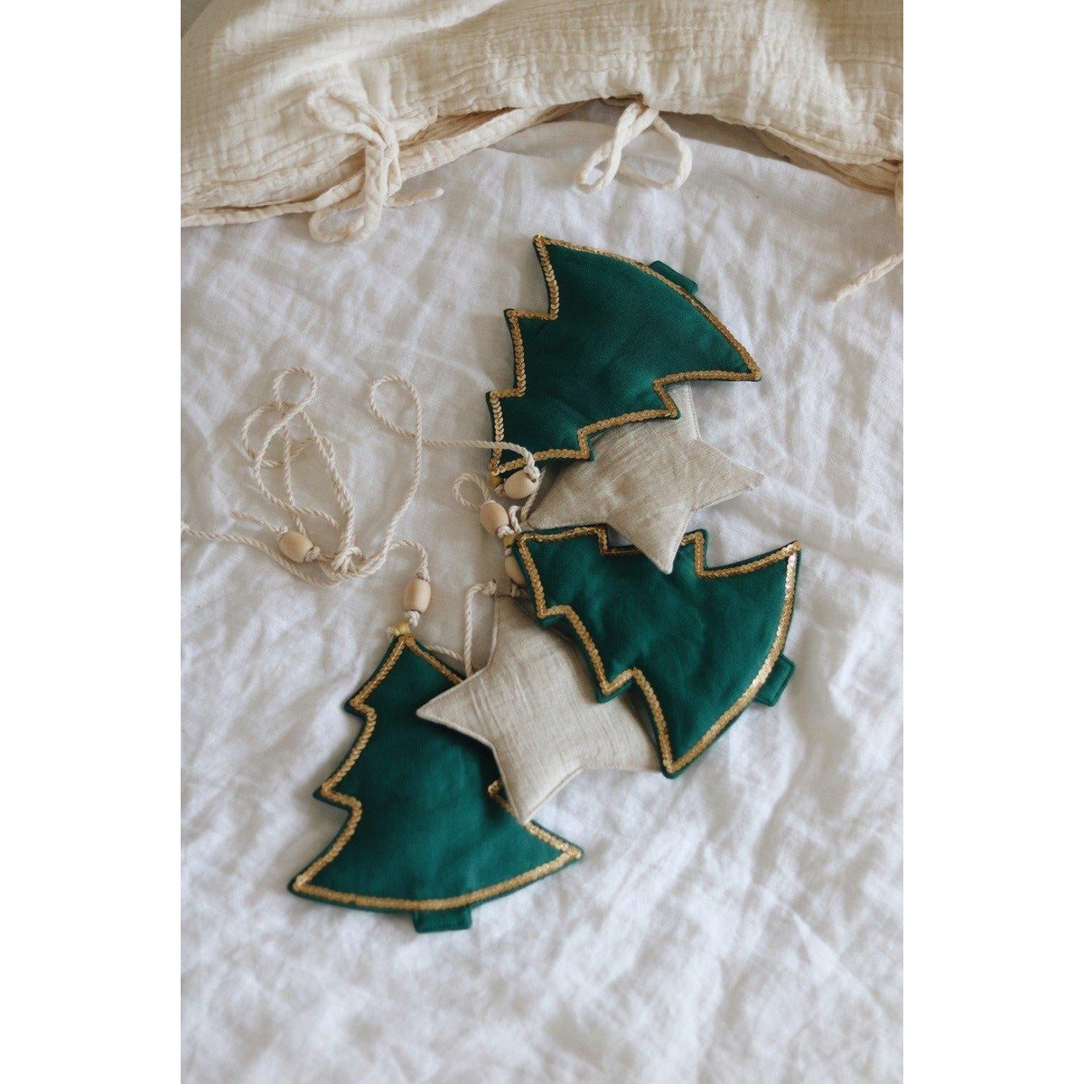 Breng een natuurlijke en gezellige kerstsfeer in huis met deze prachtige katoenen kerstslinger van Moi Mili. Deze charmante garland met groene kerstbomen van zacht katoen en linnen is de perfecte decoratie voor je kinderkamer, woonkamer of feestelijke ruimte.