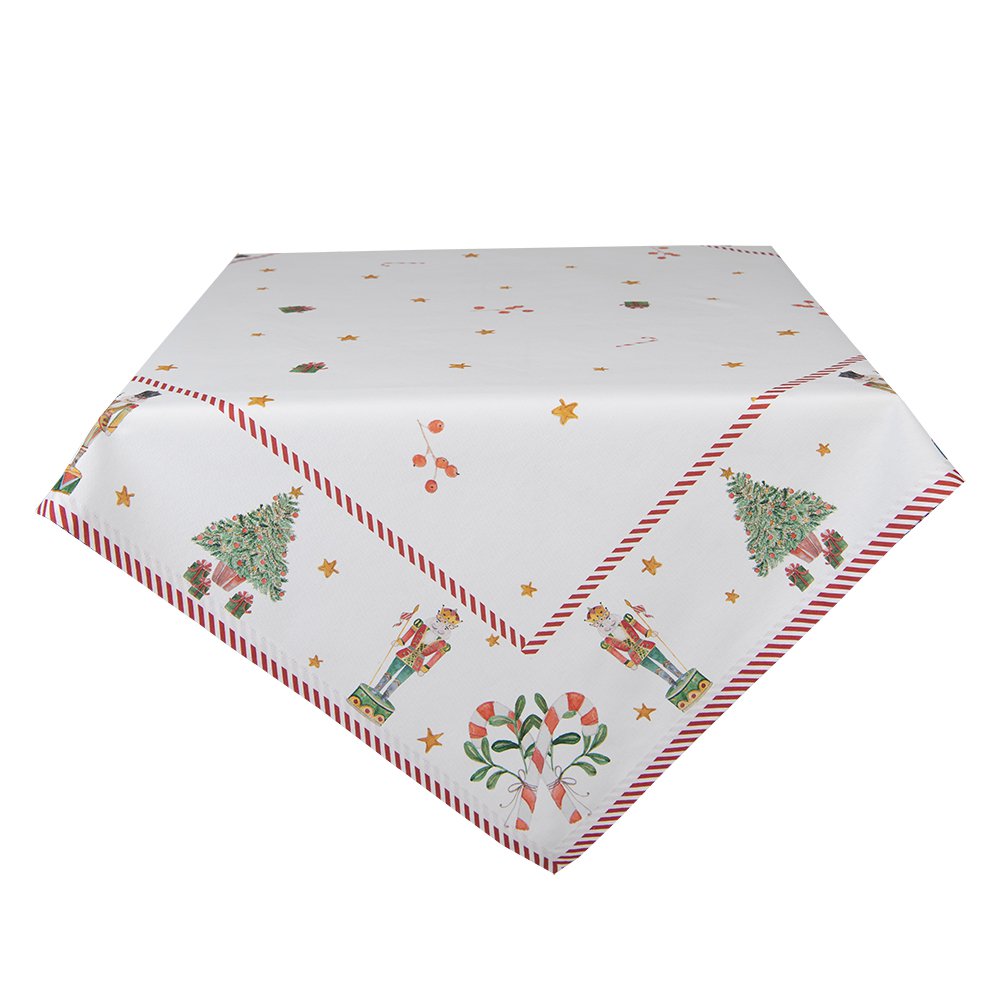 Dek je kersttafel feestelijk in met dit prachtige katoenen tafelkleed uit de 'Happy Little Christmas' collectie van Clayre & Eef. Dit charmante tafelkleed met notenkrakers en kerstmotieven in landelijke stijl brengt direct een warme en romantische kerstsfeer naar je eetkamer.