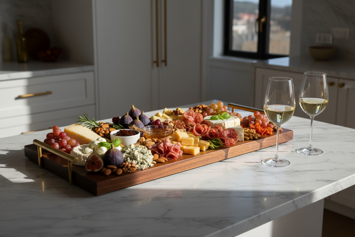 Onze Klassieke borrelplank is een borrelplank met kazen, vleeswaren en hapjes.