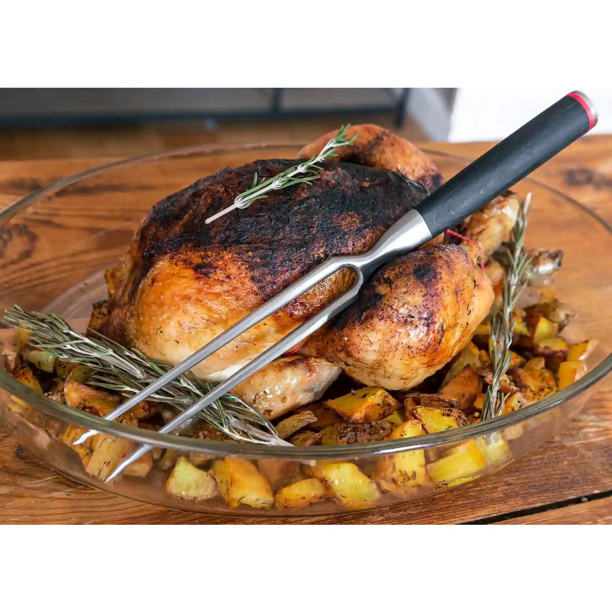 Meester de kunst van het vlees snijden met deze professionele KOTAI vleesvork van 27cm. Speciaal ontworpen voor de Nederlandse BBQ-liefhebber en thuiskok die houdt van veiligheid, precisie en stijl bij het prepareren van perfecte vleesgerechten.