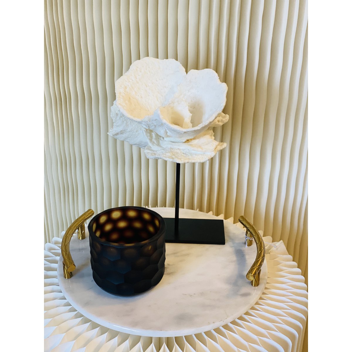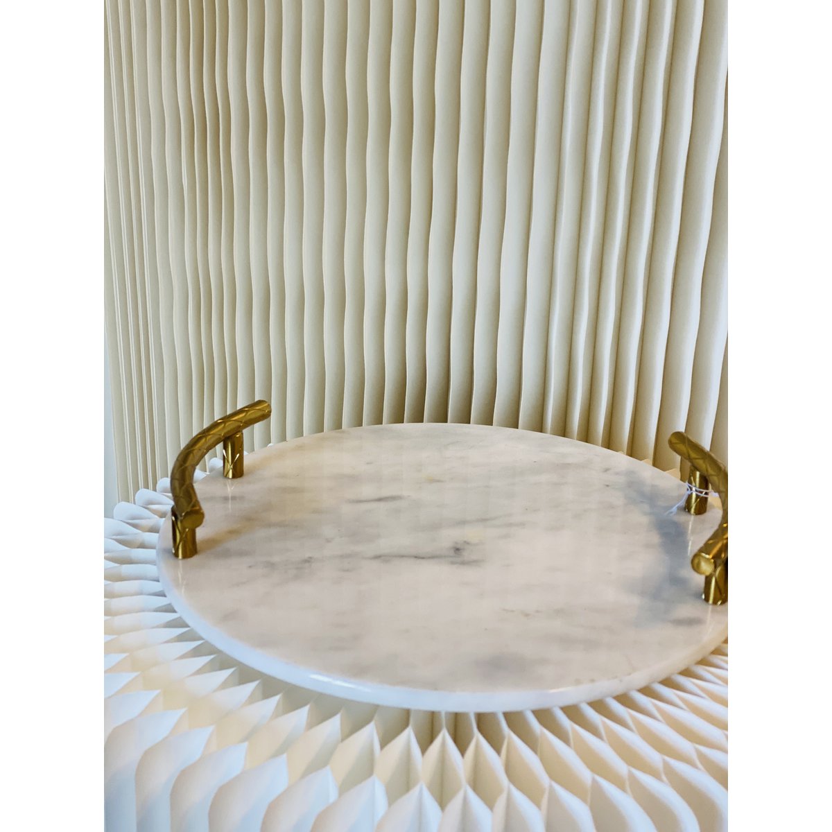 Transformeer elke gelegenheid tot een stijlvolle ervaring met dit prachtige marmeren dienblad met goudkleurige handgrepen. De perfecte combinatie van natuurlijke elegantie en luxueuze details voor de veeleisende gastheer.