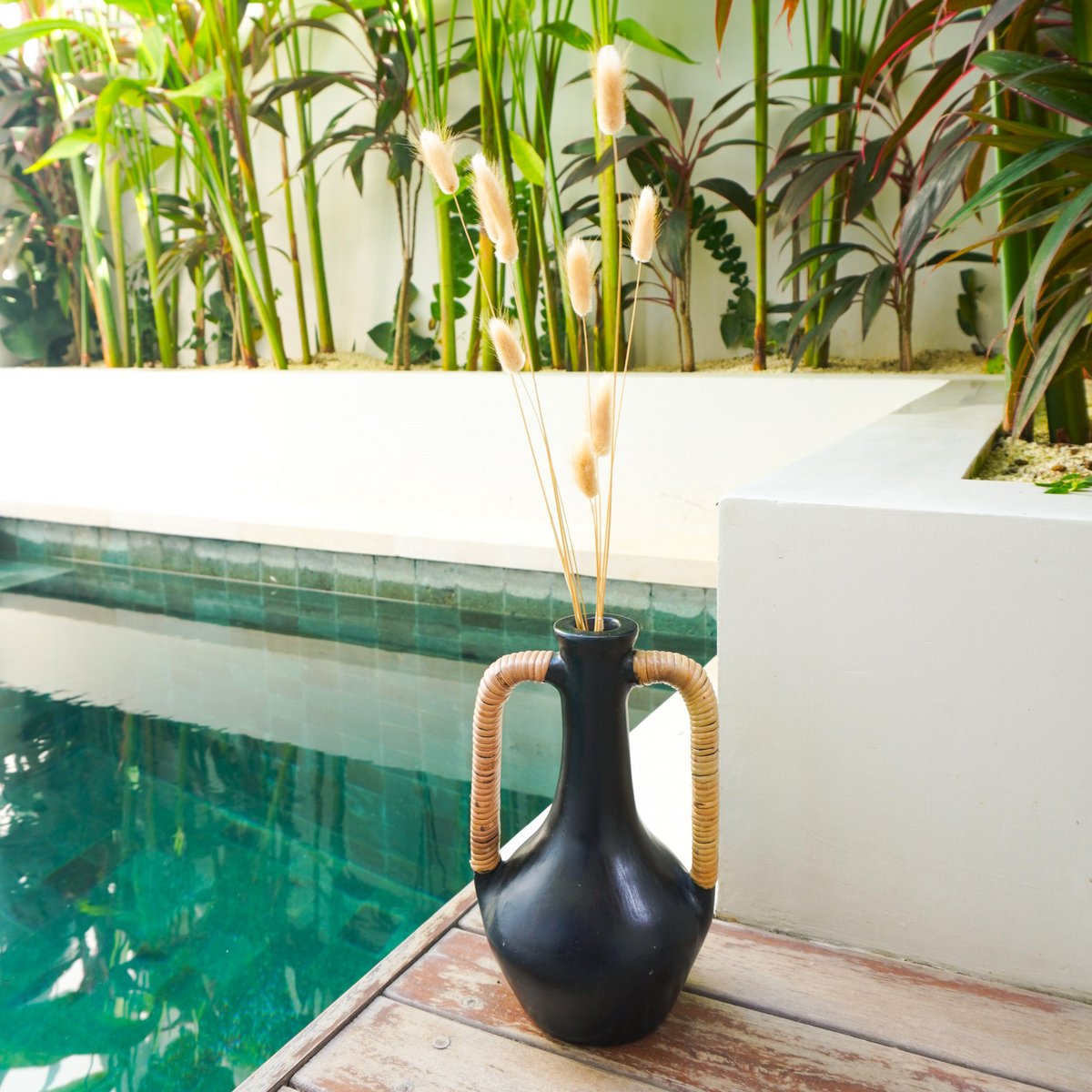 Voeg dramatische elegantie toe aan je interieur met deze prachtige SELAYAR zwarte designvaas. Handgegoten van klei voor een unieke uitstraling die perfect past bij moderne en minimalistische interieurs.