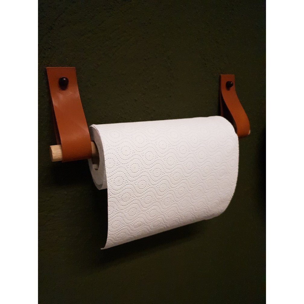 Stoere Keukenrolhouder - Handgemaakt Leer Wandmontage