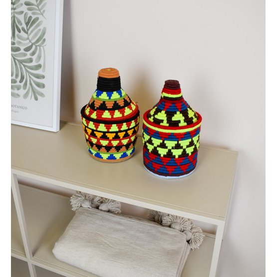 Voeg een vleugje Noord-Afrikaanse elegantie toe aan je Nederlandse keuken met deze prachtige handgevlochten fruitschaal. Gemaakt van natuurlijk riet door ervaren Marokkaanse ambachtslieden, perfect voor het stijlvol presenteren van fruit of als decoratieve schaal.