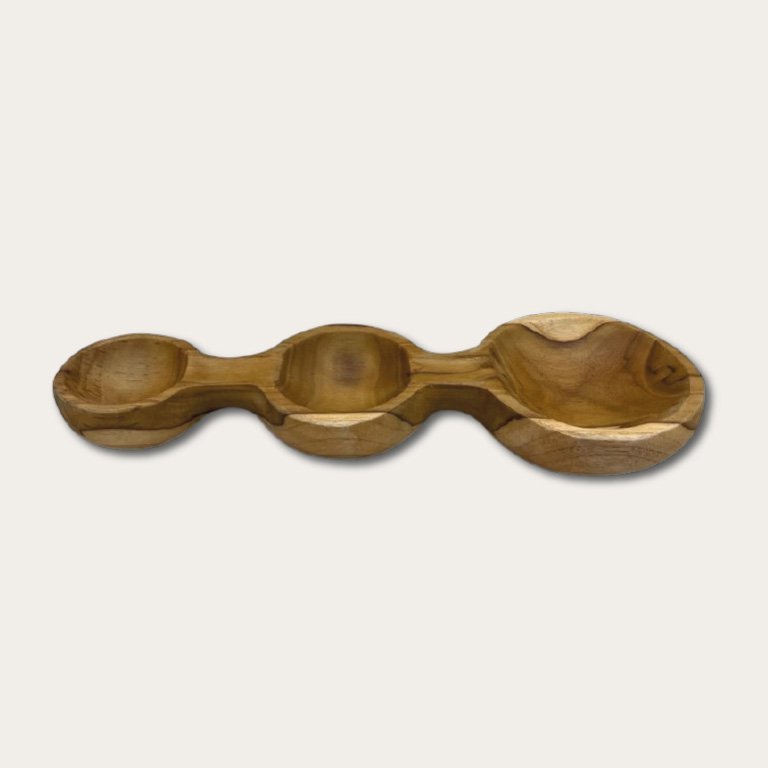 Serveer met stijl met deze prachtige Triple Teak kom. Handgesneden van duurzaam teakhout voor een natuurlijke elegantie die elke tafel instant warmte en karakter geeft - perfect voor moderne en rustieke keukens.